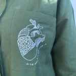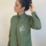Camisa de linho e algodão com modelagem oversized. Frase bordada no bolso: “arte não é o que você vê”. Peça criada em colaboração com a artista Kalina Juzwiak (kaju.).